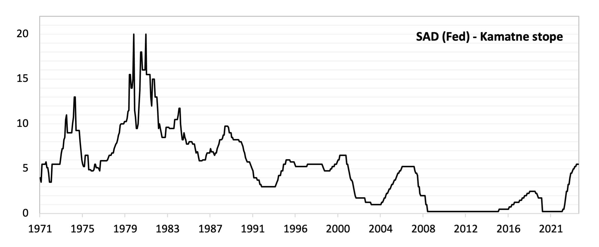 Nakon četrdesetogodišnjeg perioda skoro pa konstantnog pada kamatnih stopa i čak negativnih stopa u periodu 2010.-2020. godine, novo desetljeće označilo je velik preokret. Visoke kamatne stope polako se implementiraju u sustav, ali sporije nego u prijašnjim ciklusima podizanja stopa (1995.-1999., 2004.-2006.) zbog toga što je period vrlo niskih kamatnih stopa bio još duži i i u ekonomiji je vladalo mišljenje kako se cijeli svijet kreće prema japanskom scenariju slabog rasta i niskih kamatnih stopa. Pogledamo li analize najvećih svjetskih banaka s početka 2020-ih, može se vidjeti kako su banke očekivale da će kamatne stope ostati negativne u Europi skoro do kraja desetljeća, a u SAD-u će rasti tek blago iznad nule. Svjetska ekonomija izbjegla je recesiju 2023. zbog visokih razina ušteđevina u već spomenutom eksperimentu pomoći država, ali ušteđevina se brzo troši pritisnuta sve višim cijenama.